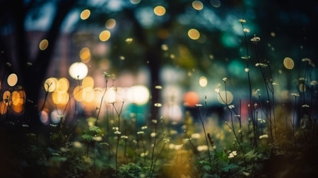 Abstract bokeh night garden in city background. Created with Generative AI technology