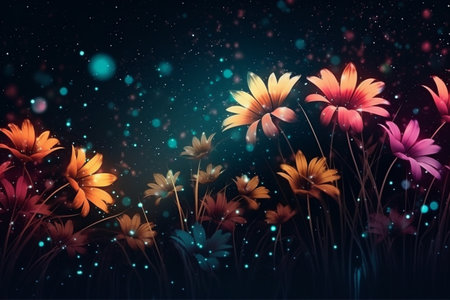 Colorful bokeh background with flowers creating a dreamy atmosphere at night
