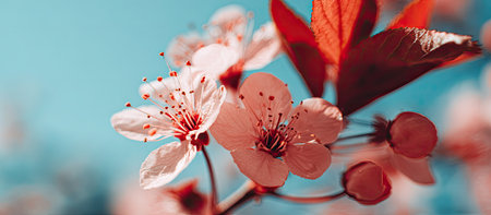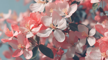 Pink flowers blooming against a pastel blue sky creating a beautiful and romantic atmosphere, perfect for valentines day, mothers day, or spring celebrations