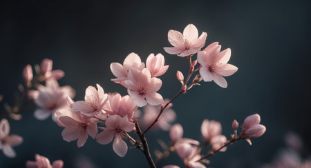 AI Generated. Delicate Pink Blossoms on a Dark Background