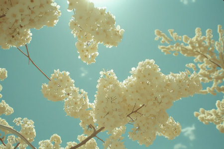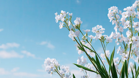 Capture the essence of nature with these stunning white flowers reaching for the sky. The background of a bright blue sky enhances their beauty and tranquility.