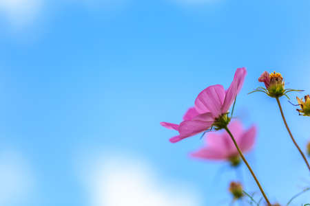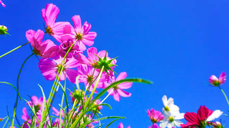 Pink and white cosmos flowers in garden. Cosmos bipinnatus in Full Bloom