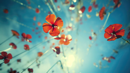 Bright flowers flutter gently in the breeze under a clear blue sky showing natures beauty.