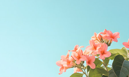 A mesmerizing view of delicate pink flowers reaching toward a clear blue sky, showcasing the vibrant beauty of nature in soft sunlight, perfect for uplifting visuals.