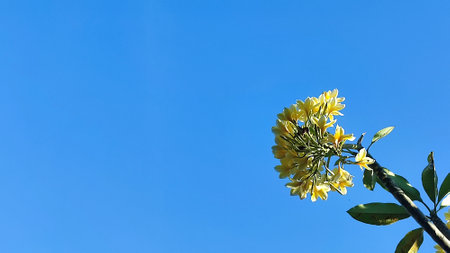A stunning display of bright yellow flowers against a clear blue sky, capturing the essence of spring and the beauty of nature in vibrant colors.