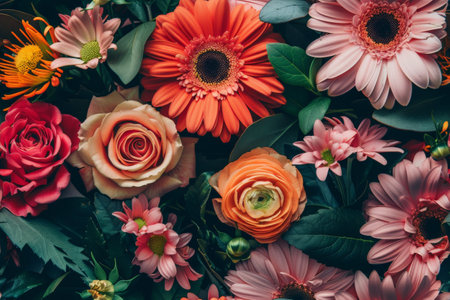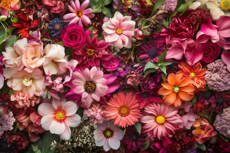 A stunning arrangement of vibrant flowers showcasing a variety of colors and textures. Perfect for decoration, events, or as a beautiful backdrop for any occasion.