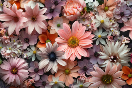 Colorful mixed flower bouquet background, beautiful, vivid. Generative AI.
