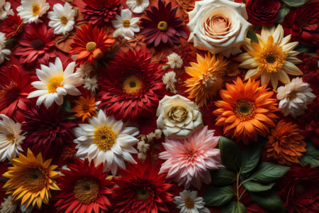 Beautiful background with red, pink, and white chrysanthemums. A vibrant floral backdrop with soft textures, perfect for banners, florist designs, invitations, prints, decorative projects, and creative visuals.