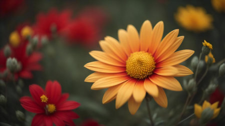 Beautiful yellow and red flower in the garden. Nature background. generative ai