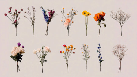 A beautiful display of vibrant flower, A bouquet of flowers in various stages of bloom, AI generated