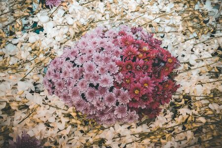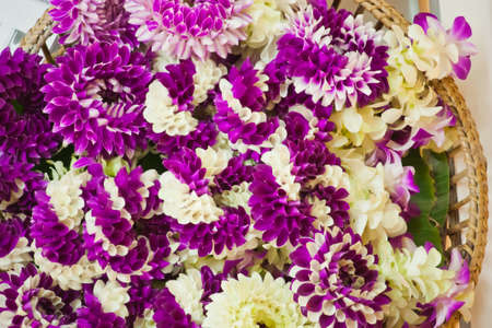 purple chrysanthemum flower & white orchid decoration. natural background