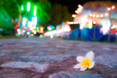plumeria flower on cement staircase in Pra Nakorn Khiri, Petchaburi