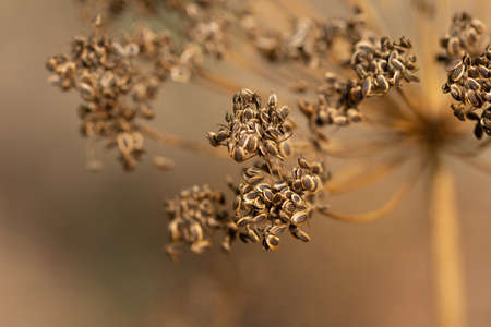 Dry dill seeds on a branch