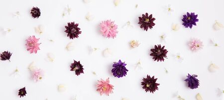 Festive flower composition on the white background. Overhead view