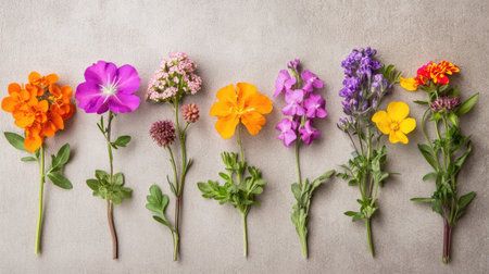 A vibrant array of colorful wildflowers arranged beautifully on a bright white surface for all to admire