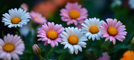 Vibrant flowers blooming in a garden with soft sunlight