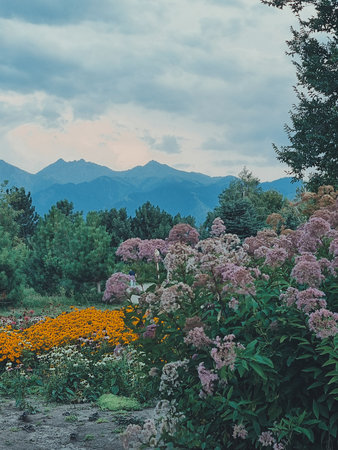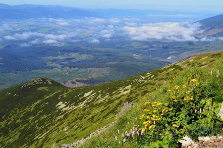 Colorful flowers blooming in the mountains. Tatra in Poland