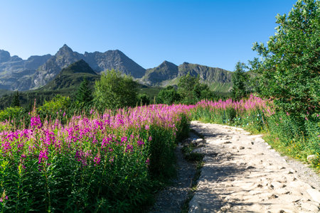 Blooming fireweed flowers on Hala GÄ…sienicowa in the Tatra Mountains - Poland