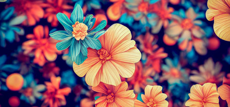 Vibrant flower garden landscape with colorful blossoms in bloom