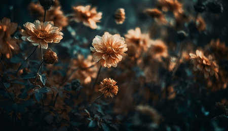 A captivating image of autumnal flowers in a garden. Golden hues dominate, creating a serene and beautiful scene.