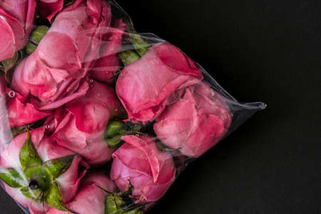 Environmental pollution concept. Flower in a plastic bag. Danger problem. Environmental conservation. Ecological lifestyle