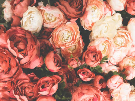 Bunch of Pink red bouquet of mixed roses. Pattern Fresh spring Summer background