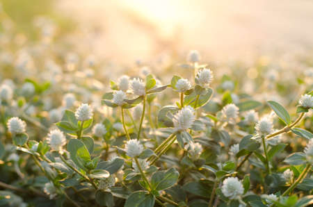White Globe Amaranth flowers on sunset.