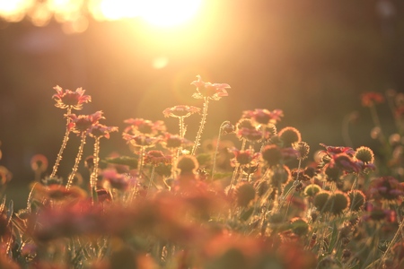 Flowers in the sunset time, vintage tone