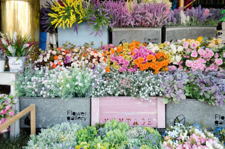 Colorful artificial flowers in a flower shop