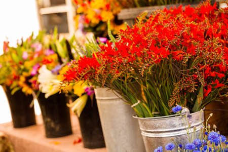 Fresh cut flowers on sale at the local farmers market.