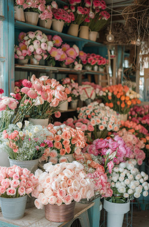 floral patterns with soft hues in a charming flower shop setting