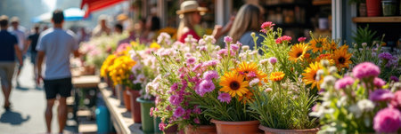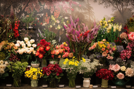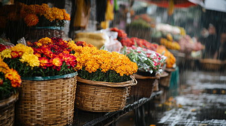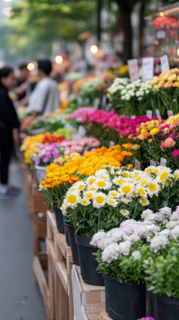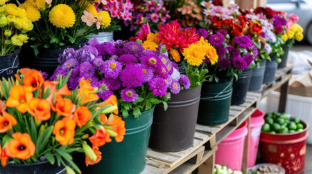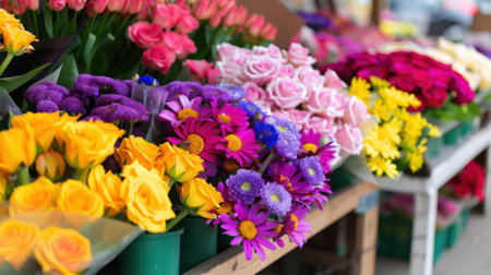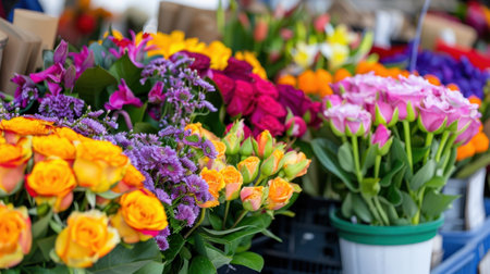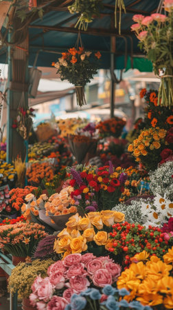 Bustling market is filled with beautiful flowers that showcase vibrant colors and fresh blooms everywhere. Generative AI