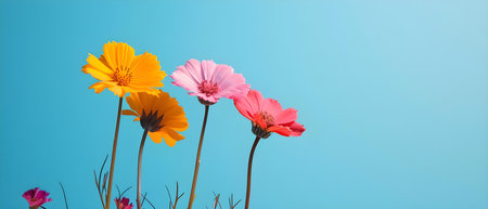 Embrace Simplicity: Flowers Against Blue Sky. Concept Nature Photography, Flower Arrangements, Color Contrast, Skyline, Simplistic Designs