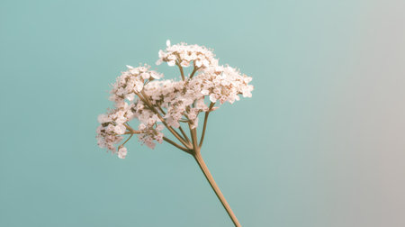 A single stem of wildflowers is presented in a minimalist style, set against a plain green background, emphasizing natural beauty.