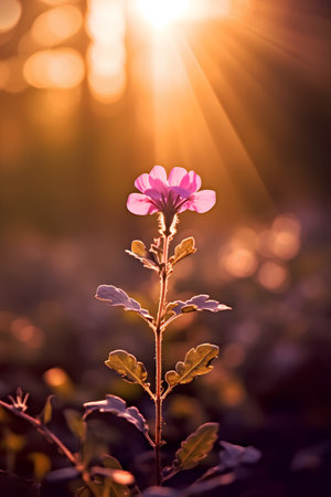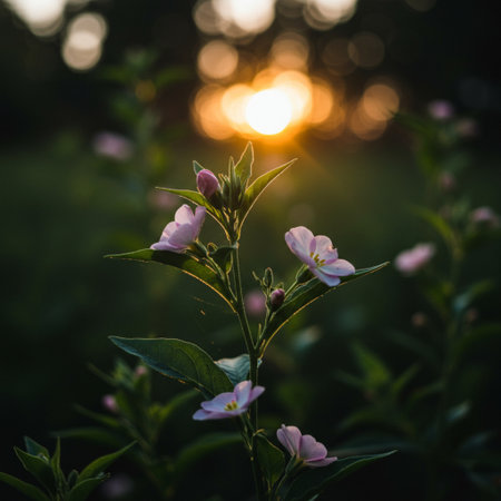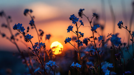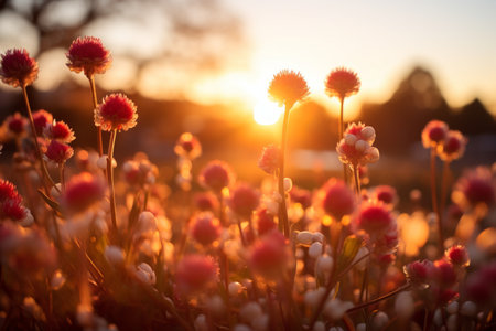 Wildflowers bathed in the warm glow of sunset. A tranquil scene of nature's beauty.