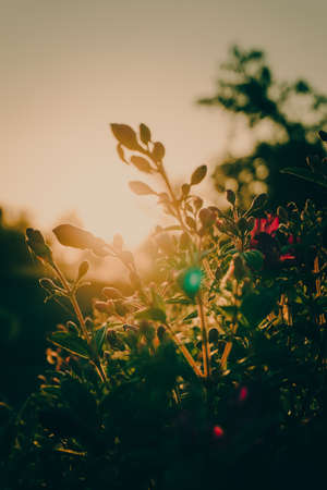 Relaxing and heart opening scene with in the nature. Alternative folk medicine. Fireweed at sunset