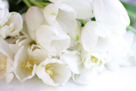 Bouquet of white tulips for March 8. Abstract floral background for International Women's Day