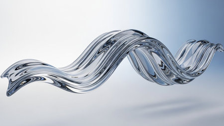 A translucent, wavy, twisted form with a reflective surface against a soft gradient background.