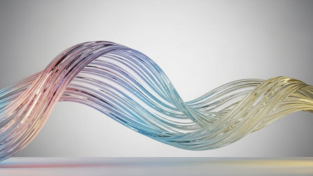 Abstract visualization of data streams with glowing 3D lines twisting and curving in a modern digital environment