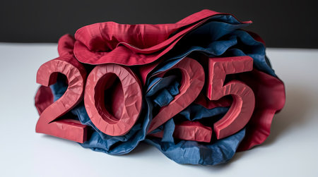Abstract design featuring the number 2025 created with flowing, colorful strokes on a dark background that captivates attention.
