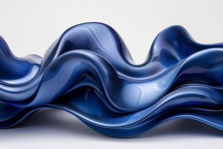 digital rendering of flowing, liquid blue waves against a white background. The smooth, glossy surface of the waves creates a sense of tranquility and depth.