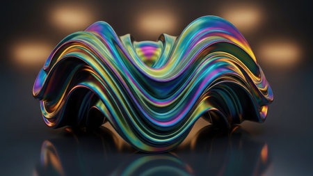 Abstract Fluid Form, Vibrant Colors, Smooth Gradient Fades, High Contrast. Dynamic Viewing Angle.