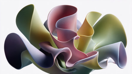Abstract showing swirling pastel colored ribbons of liquid flowing in abstract organic shapes with soft light and shadow keywords: abstract, pastel,...
