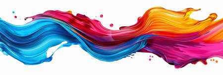 Colorful ribbon strokes forming a wave, with brush paint effects creating a dynamic splash.