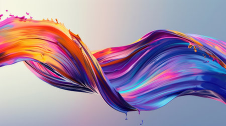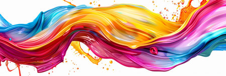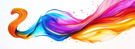 Colorful brushstroke ribbon swirling in abstract splash background, wavy design with fluid rainbow elements,