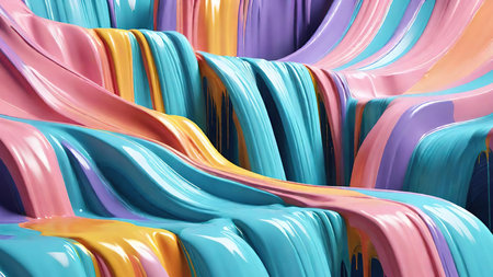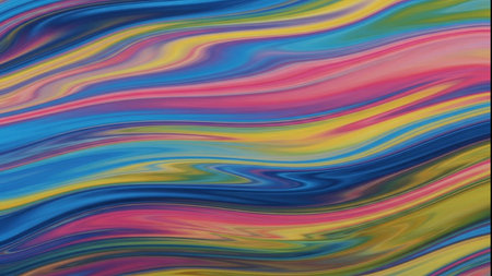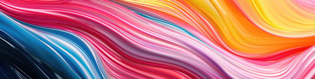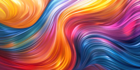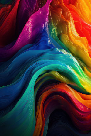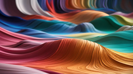 This image showcases a vibrant abstract design composed of flowing waves of color. It features a range of bright hues, creating a dynamic and visually engaging composition. This style can be applied in graphic design projects, website backgrounds, or print media to add a touch of color and visual interest.
