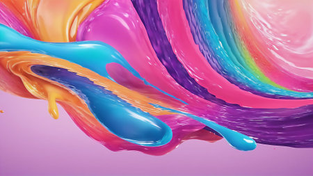 Vibrant Swirl of Colorful Paint in Dynamic Motion A striking abstract digital featuring a mesmerizing fluid and captivating dance of paint in a kaleidoscope of vivid hues