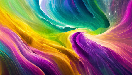 Explore the mesmerizing flow of colorful paint swirling in dynamic wave-like formations, creating intricate abstract patterns for artistic inspiration and creativity.