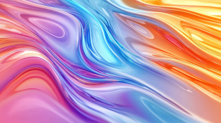 Colorful gradient waves in a 3D-rendered glass texture, flowing fluidly in an abstract and bright composition.