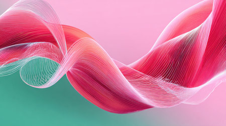This digital artwork features flowing abstract waves in red and pink hues, creating a serene, dynamic effect. Ideal for designs requiring elegance and vibrancy.